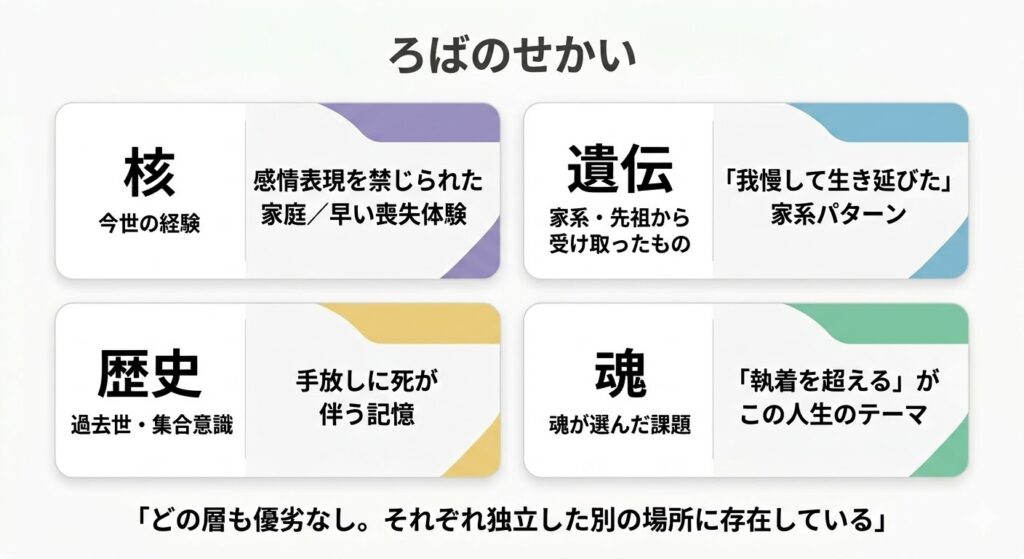 - 家系・遺伝の層を見ていない——自分の努力だけでは動かない根っこがある