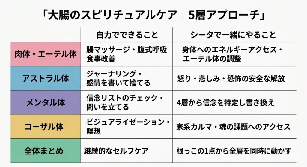 解放ワーク実践ガイド|大腸のスピリチュアルな意味を身体から魂まで5層でケアする
