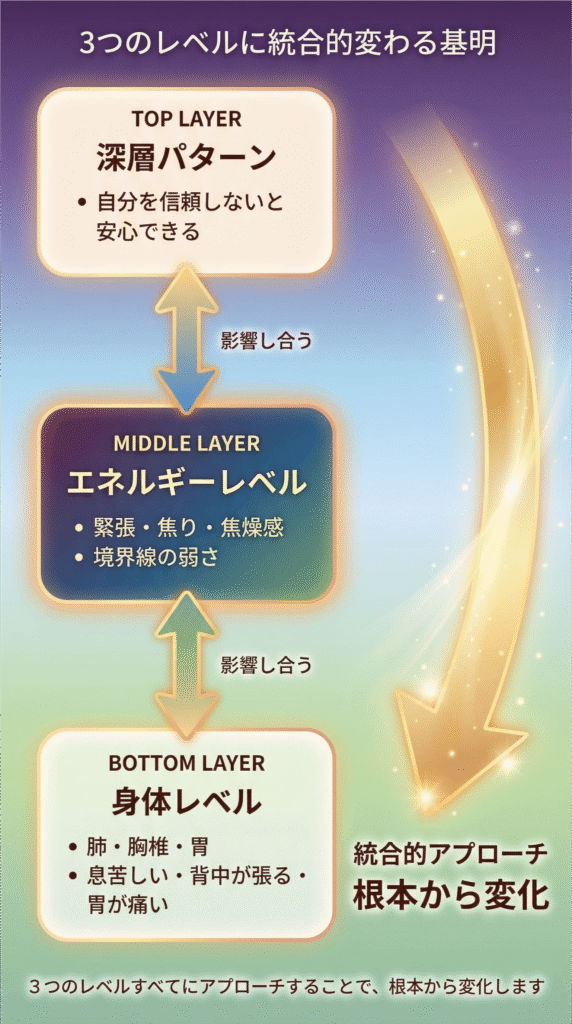 この記事の内容は、医療行為や医療アドバイスではありません。身体症状が長引く場合、まずは医療機関を受診してください。当サロンのセッションは、医療の代替ではなく、心身の健康をサポートする補完的なアプローチです。セッション内容や効果には個人差があります。