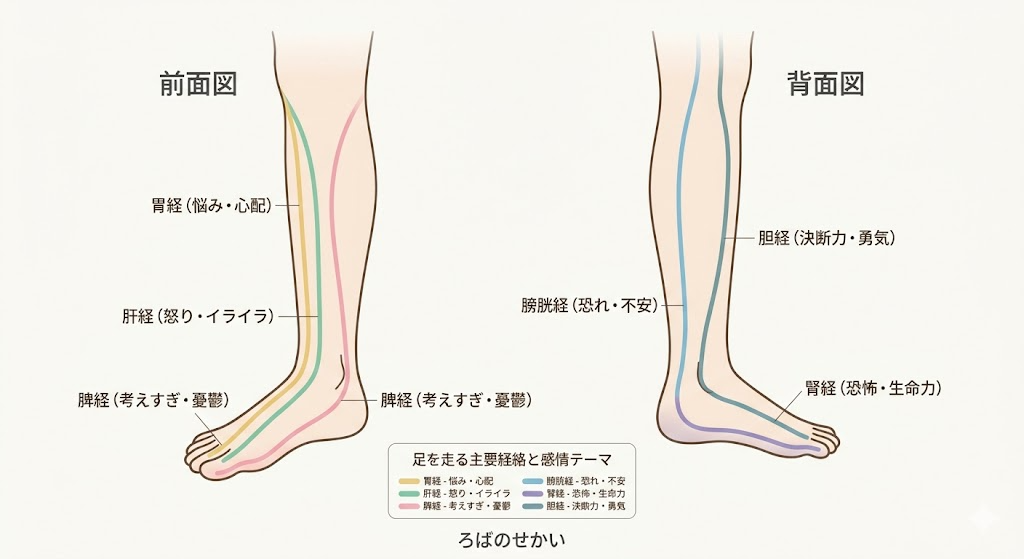 足と関係する経絡・臓腑・感情のつながり