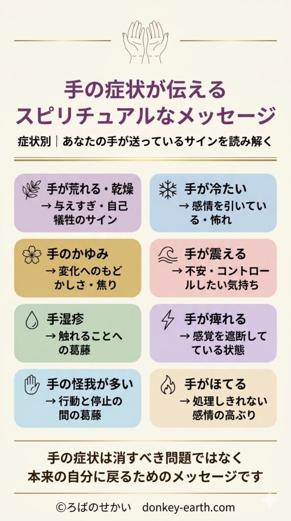 手のスピリチュアルな意味|痛み・怪我・かゆみ・痺れ・荒れ──左右・指別完全ガイド