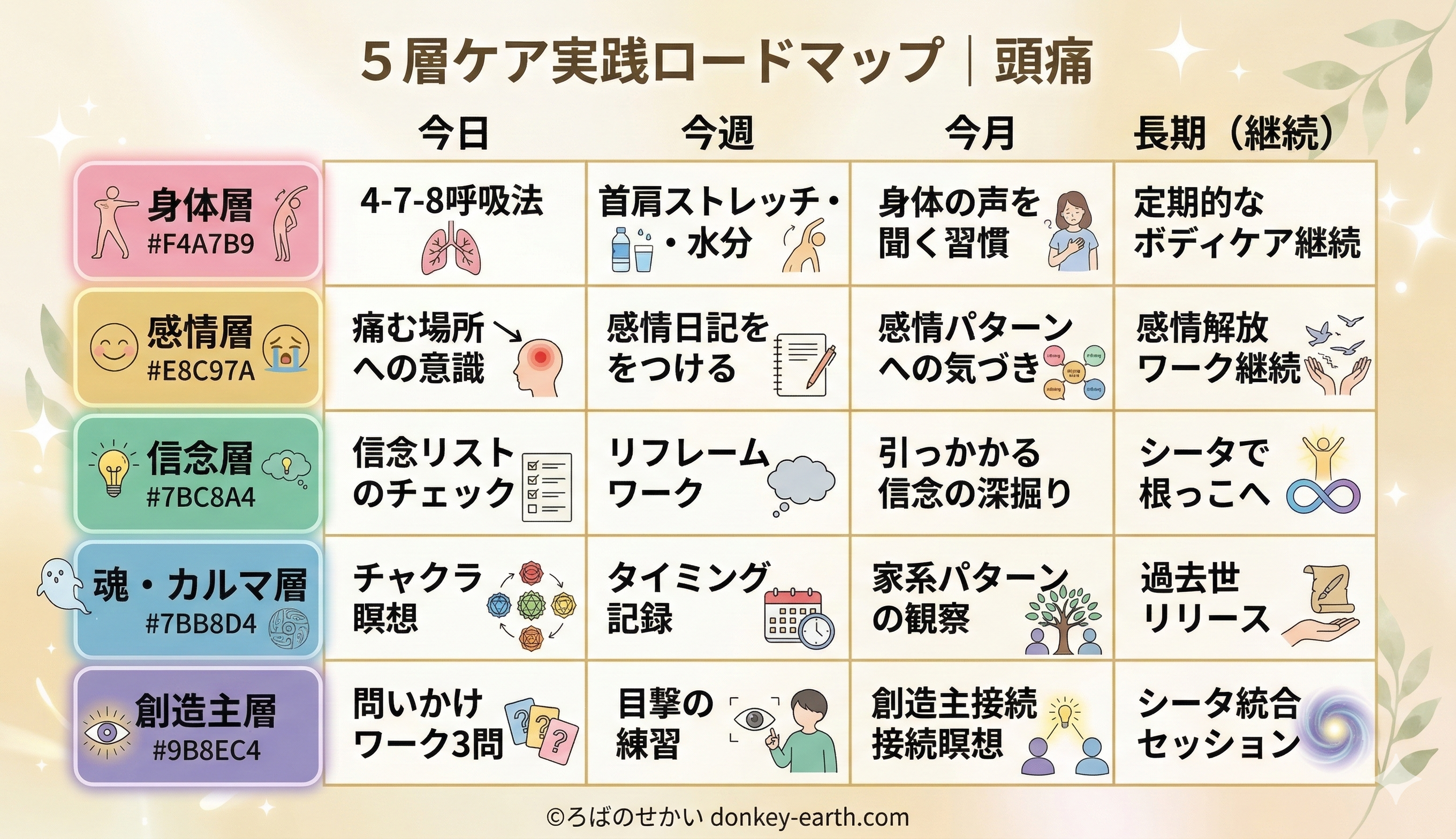 「また頭痛が来た。なんで治らないんだろう」という自責・焦り・消耗ではなく、「今のあなたに、このメッセージが届くタイミングだった」という愛のナビゲーションとして受け取れます。