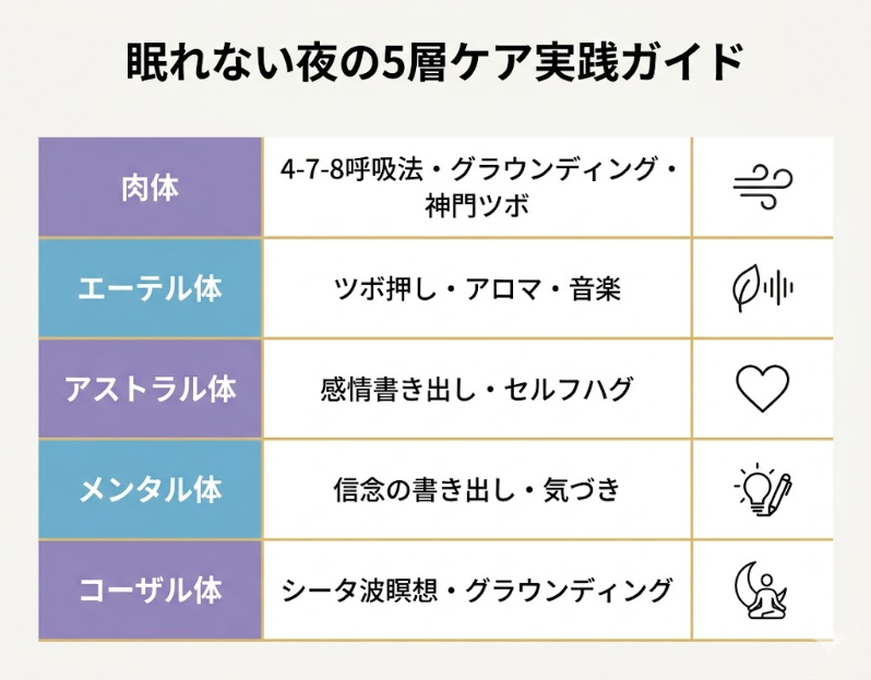 - 眠れない夜への5層解放ワーク実践ガイド|スピリチュアルなアプローチ