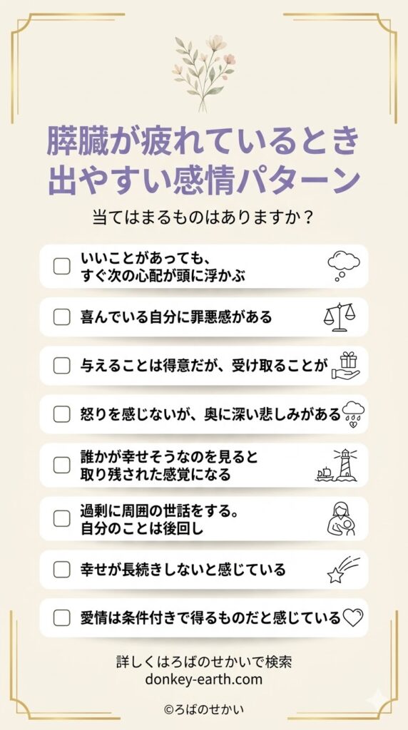 以下のサインが複数当てはまる場合、家系カルマが膵臓の不調に関係している可能性があります。