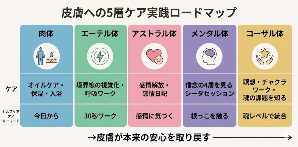 この記事では、皮膚のスピリチュアルな意味を東洋医学・感情・信念・魂・創造主の5層から読み解き、繰り返す皮膚トラブルのほんとうの意味と、実践できる解放ワークまでをお伝えします。
