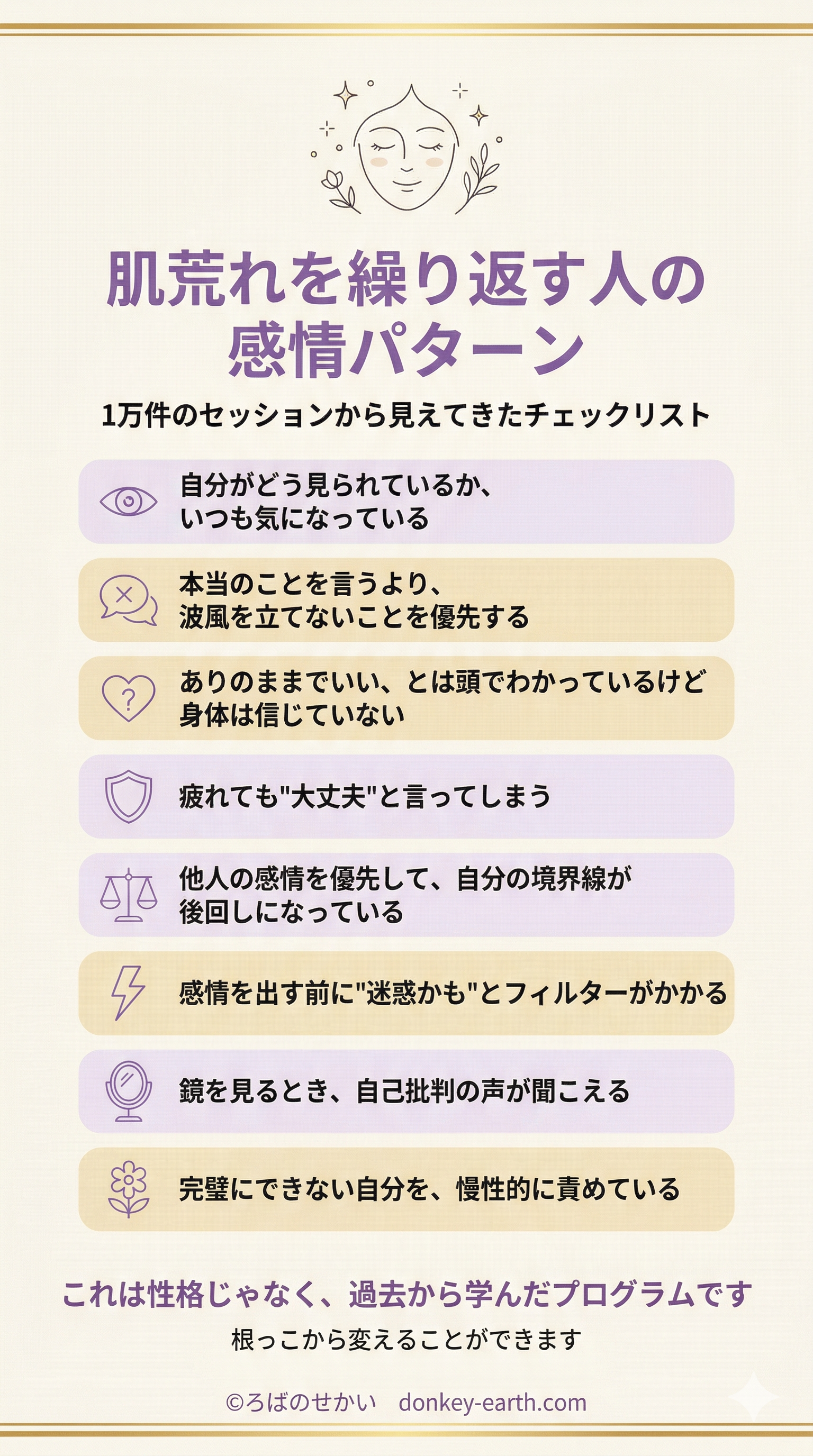 セッションで肌荒れを抱えている方に共通して見えてくるのは、以下のような感情・思考のパターンです。