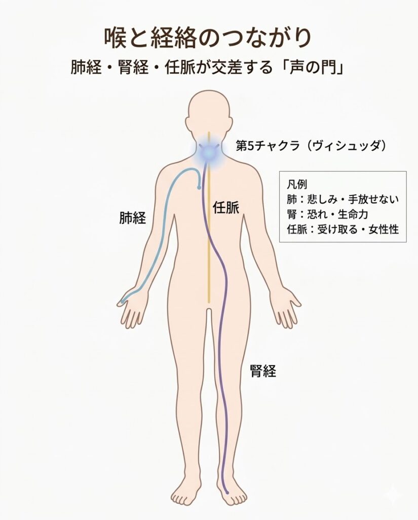 東洋医学では、喉は複数の経絡が交差する「声と生命の門」とされています。